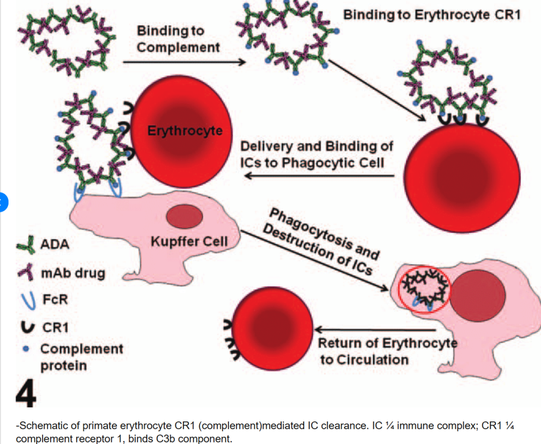 6.2 大量循环免疫复合物的形成会带来两方面影响:(1)影响药物药代动力学:免疫复合物可加速药物清除或改变其分布。比如ADA-药物复合物被巨噬细胞系统清除,导致有效暴露降低。(2)引发免疫复合物病理反应:如在猴长期毒性试验中观察到,某人源化抗体由于形成免疫复合物而引起免疫复合物性肾小球肾炎、血管炎等病变。